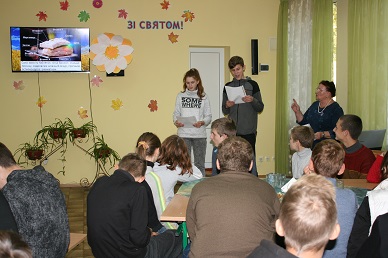 У КЗ КОР «Васильківська спеціальна школа І-ІІ ст.» відбулось розширене заняття природничого гуртка «Дивосвіт природи»: «Є на світі золоті слова – хліб -  в усьому голова». Учні 5-10 класів дізнались, що історія хліба налічує кілька тисячоліть, що перший дріжджовий хліб навчилися робити в Єгипті. І вже тоді хліб вважався годувальником і асоціювався з сонцем. І навіть позначався з ним (у ранньої писемності) одним символом – кругом з крапкою в центрі. Керівник гуртка Г.М. Бугай ознайомила дітей з висловами та прислів’ями про хліб, ознайомлюючись з презентацією дізнались, що не відразу зерна стали хлібом, найбільш корисним є хліб висівковий та темний із житнім борошном, а до хліба українці додавали сало. Сало - самий відомий український національний продукт. Згідно статистики, за споживанням сала, як не дивно, українці посідають тринадцяте місце в Європі. В Україні стали популярні фестивалі сала, у Львові діє ресторан-музей «Сало». А у Василькові відбувся «Шкварка-фест», де було навіть сало в шоколаді та карамелізоване, шкварки до борщу. Презентація та група «Ерудит» допомогли дітям зрозуміти, в чому користь сала, чому його потрібно вживати щодня в невеликій кількості з хлібом, часником, цибулею та овочами. 	   Наприкінці засідання гуртка учні із задоволенням посмакували бутербродами із житнього хліба, змащеного пастою (інгредієнти: сало, часник, кріп), прикрашеного листочками петрушки та пили смачний чай з лимоном.
