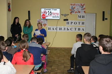 Жорстока та насильницька поведінка дітей і підлітків потребує уваги не тільки педагогів і батьків учнів, а й усього українського суспільства, оскільки її масштаби та кількісні прояви давно перехлюпнули за «борт шкільного корабля».    27 листопада 2019 року службою у справах дітей та сім’ї Васильківської міської ради, спільно з сектором ювенальної превенції Васильківського відділу поліції ГУНП в Київській області була проведена зустріч-бесіда з учнями 5-10 класів КЗ КОР «Васильківська спеціальна школа І-ІІ ст.» на тему: «Нормативно-правова база щодо захисту дітей від насильства».    У ході зустрічі активізовано діяльність дітей з метою посилення інформаційно-просвітницької роботи, яка направлена, в першу чергу на попередження та збільшення знань про всі форми насилля. Інспектор з ювінальної превенції лейтенент поліції Лозяренако А.В. провела відео лекторій з елементами бесіди в який увійшли теми «Насильство та кримінальна відповідальність».    Головний спеціаліст ССД Васильківської міської ради Лошчук Ж.В. розповіла про відзначення Міжнародного дня боротьби з рабством та обговорили з учнями 9-11 відеоролик «Розірви коло», присвячений боротьбі проти рабства та торгівлі людьми.    Вихованці школи приєдналися до участі в Міжнародній акції «16 днів проти насилля» з ними проведено низку тематичних заходів: конкурс малюнка, виховні години з питань попередження насильства у сім’ї, випуск інформаційного бюлетеню «Стоп насильство!», виставку у шкільній бібліотеці, виставка дитячих робіт «Світ очима дітей»; соціальний педагог та психолог провели анонімне анкетування та треніг з учнями 1-4 класів «Наші долоні проти насильства».    Ми повинні об’єднувати зусилля для подолання насильства в сім’ї, спільно виробляти механізми боротьби з ним, з метою попередження, виявлення та профілактики насильства серед неповнолітніх.