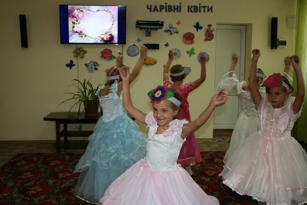 ніжний танець з дівчатками-квітами, загадувала загадки про квіти, а діти чітко