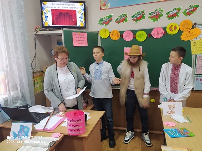 Під час творчого практикуму учні відгадували фразеологізми, які заховались у малюнках. Особливий інтерес викликала у присутніх театральна інсценівка гуморески Г. Бойка «Веремій». Перевтілившись в героїв гуморески, діти уміло оперували фразеологічними зворотами, розкриваючи мудрість та глибину українського народу.