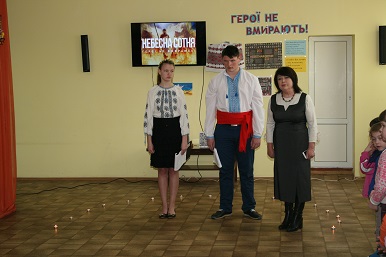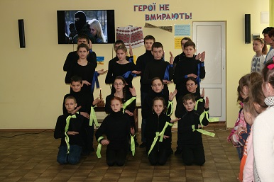 Нікого не залишив байдужим флешмоб у виконанні учнів старших класів під патріотичну пісню В.Вакарчука «Обійми мене». Запаливши свічки та передаючи цей священний вогонь – частинку вічного – один одному, старшокласники мали змогу згуртуватись спільною думкою про силу та волю, мудрість і наснагу для зміцнення власної держави на власній землі.