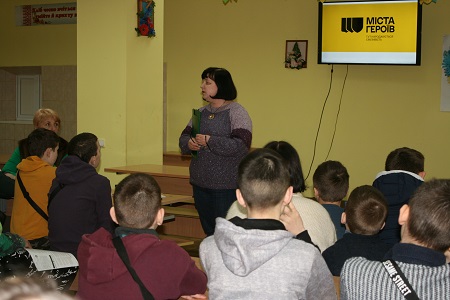 "Міста героїв. Тут народжується сміливість", яку учні з вихователями змогли переглянути в шкільній бібліотеці.