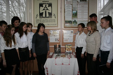 Бібліотекар школи провела огляд літератури «І пам’яті свіча не згасне…», під час якого ознайомила присутніх з книжковими виданнями, в яких міститься інформація про страшні роки голодомору в Україні. Голодомор 1932-1933 років в Україні назавжди залишиться в нашій пам’яті, як одна з найстрашніших сторінок минулого, тому що пам’ять – це нескінченна книга, в якій записано все життя: і життя людини, і життя країни.