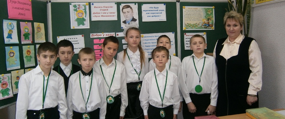 | Казка невіддільна від краси, сприяє розвитку естетичних почуттів, без яких неможливе благородство душі, щира чуйність до людського нещастя горя, страждань. Завдяки казці дитина пізнає світ не тільки розумом, а й серцем! З казки дитина черпає перші уявлення про справедливість, добро та зло. Цими днями учні п’ятого класу, разом зі своїм вчителем Воробйовою О. С., здійснили на уроці української літератури мандрівку країною казки. | |  | На уроці учні вчилися оцінювати вчинки героїв з позиції добра та зла за казкою Василя Короліва-Старого «Хуха-Моховинка». Цікавинною на уроці було випереджувальне завдання: намалювати Хуху-Моховинку з власної уяви. Діти зі словами: «Я уявляю Хуху-Моховинку саме такою» прикріплювали свої малюнки до дошки разом з тим, визначали одну із рис характеру притаманну героїні казки. |  | На уроці звучало багато суджень і міркувань учнів з приводу оцінки вчинків головних героїв: Хухи-Моховики та діда. Вчителем була запропонована рольова гра: «Я – головний герой, Чому я зробив саме так?» Урок супроводжувався цікавою презентацією. Цікавою була інсценізація уривку казки, яка підвела учнів до висновку: «На зло ніколи не слід відповідати злом, бо лише добро переможе зло!» |  |  |  | На уроці звучала поезія В. Микитина: Живуть в душі у кожної людини Дві протилежні половини: Одна з них – добра, світла,