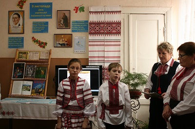 різних життєвих ситуаціях.  |   |   |    |    | Щоб привернути увагу дітей до історії розвитку рідної мови та українського книговидавництва, шкільний бібліотекар активно пропагувала рідне слово серед молодших учнів школи. Дітей ознайомили з книгами по даній тематиці і запросили відвідати ще й міську центральну бібліотеку.   У актовій залі школярі взяли участь у мовних вікторинах «Мовна скарбничка», «У світі цікавих слів і висловів».   З метою пропагування грамотності, розвитку державної мови, виховання мовної культури учні і вчителі української мови та літератури Н.З. Терещенко, О.С. Воробйова написали ХV Всеукраїнський радіодиктант національної єдності, який транслювався по телебаченню.  |  Серед заходів особливо цікавим був