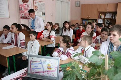 Вчителі української мови і літератури цікаво розповіли, супроводжуючи презентаціями, де і коли народилася традиція відзначення Міжнародного дня рідної мови. Дітям було запропоновано цікаві вікторини, кросворди, звучали прислів’я про мову, та лунали українські пісні. Найактивнішими були учні: Кононенко Д. (10 клас), Стеценко В. (7 клас), Бондар В. (8 клас). Найкраще прозвучали поезії у виконанні: Обіух Б. (8 клас), Лонського Н.(8 клас), Чепурди Л. (7 клас), Зайцевої Д., Головача О. (5 клас).