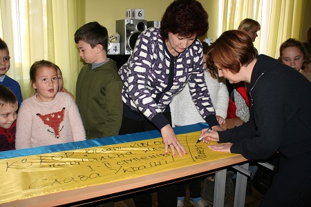 передову. Кожен клас зібрав теплі речі, смаколики, малюнки, оберіги, власноруч зроблені окопні свічки та частинку души і тепла для наших бійців, які виконують завдання по звільненню та обороні нашої країни на Харківщині і Донеччині. Також діти та вчителі підписали прапор, який безсумнівно стане прапором перемоги нашої бригади. Таку націю – не перемогти жодному окупанту! Разом і до перемоги!