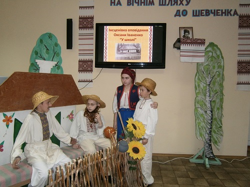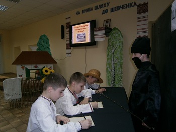 Особливо, вдалася роль маленького Тараса учню 5-го класу Григоренко Артуру. На Україні, є що цінувати і про кого говорити, тому величезні поезії Т.Г.Шевченка є обов’язковим для наших учнів. П’ятикласники також декламували вірші Т.Шевченка під музику та в супроводі мультимедійної презентації. Виховний захід підготувала і провела з учнями 5-го класу вихователька Калашник З.О. |
