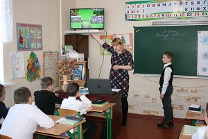 Урок цікавий і продуктивний, направлений на формування в учнів таких ключових компетентностей як навчально-пізнавальна, інформаційна, виховання екологічного мислення. В цікавій формі, поєднуючи різні види діяльності, учитель ознайомила другокласників з особливостями життя рослин взимку, на цьому матеріалі сформувала в учнів поняття про «текст» та його характеристики. Поєднання ігрових прийомів роботи з опорою на презентацію та відеоматеріал сприяли тому, що учні з великим інтересом та захопленням працювали над завданням, об’єднаними одним об’єктом вивчення, а саме «Дуб – рослина символ України». Діти залюбки відгадували загадки, виконували завдання від сойки, прикрашали чарівний дуб. На уроці були використані інтерактивні методи: «Асоціативний кущ», «Експрес-опитування», «Мозковий штурм, гра «Склади слово», гра «Жолуді», «Кольорова рефлексія». Завдання з української мови включали списування, малюнковий диктант, роботу з деформованим реченням, добирання заголовку, роботу з текстом.