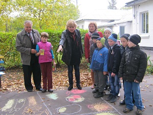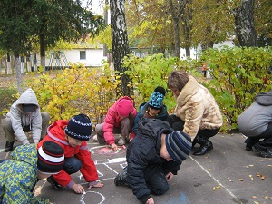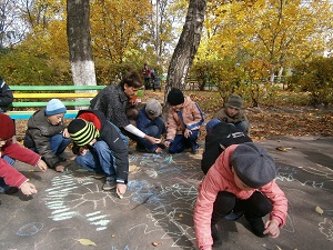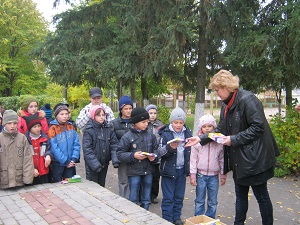 Планом заходу передбачався конкурс читців «Барви осені» та конкурс «Малюнок на асфальті» в якому прийняли участь учні П – 4 класів. Молодші школярі дуже люблять осінь, її красу і неповторність, саме тому вони із задоволенням декламували вірші, присвячені цій порі року. | Учні