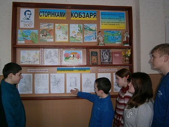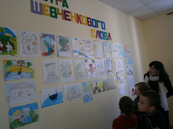 конкурс учні 3-10 класів. |  |  |  |  | З малюнків оформили дві виставки "Сторінками Кобзаря" та "Палітра Шевченкового слова", вони перетворилися на