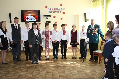 На лінійці був присутній ветеран війни Григорій Іванович Табурчак, який розповів про трагічні дні війни, безперервні нальоти ворожої авіації, про те, як із загоном народного ополчення брав участь у затриманні німецьких диверсантів, змальовуючи образи учасників воєнних дій. Усвідомлюючи величезну ціну, якою завойовано мирне життя, під час лінійки учні схилили голови та хвилиною мовчання вшанували пам'ять тих, чиї імена золотими літерами вписані у героїчний літопис нашої Батьківщини.