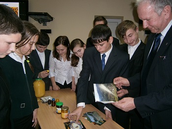 | Дізналися учні і про професійне свято бджолярів України, яке відзначається щороку 19 серпня. Упродовж зустрічі Віктор Васильович допоміг