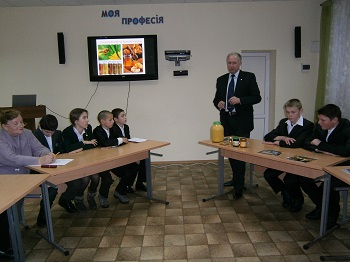 а робітники, які займаються цією справою, - пасічниками. Під час зустрічі, Галина Михайлівна провела інформаційно-роз’яснювальну роботу з учнями щодо здобуття ними робітничих професій, одна з яких - пасічник. |  | Для оволодіння