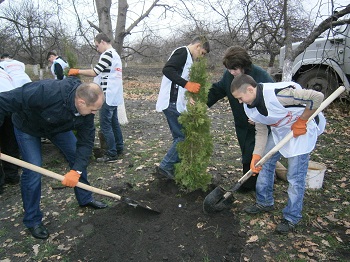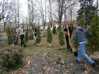 для інших», – сказала директор спецшколи-інтернату Л.С.Куравська, яка теж завзято допомагала садити дерева. |  |  |  |