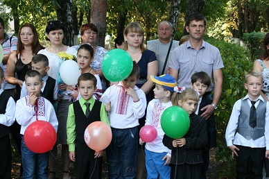 розчинила двері, зодягнутим переважно у вишиванки, школярикам, схвильованим батькам
