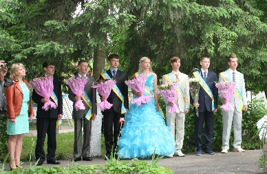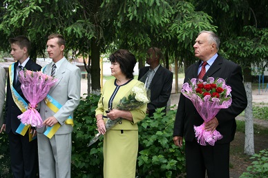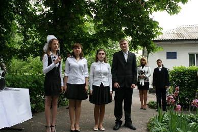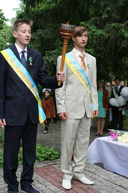 школи. Одну з традицій, передачу "Факелу Знань", виконали випускники Євгеній Сидорчук та Максим Коваленко.    |   | Відчуття дорослості і сум’яття прощання зі школою поєдналися у щемкій мелодії останнього шкільного дзвоника у виконанні випускника Ярослава Галушка та учениці 1 класу Анастасії Цимбал.  Батьки випускників проводжали своїх дітей у самостійне життя,