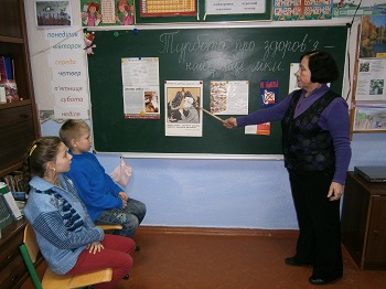 Вихователь Л.М. Рассохіна запросила до учнів 4 класу на заняття лікаря. Коли тему куріння піднімають педагоги - це один погляд на проблему, а слово лікаря - професіонала зовсім інші. Ці слова більш вагоміші, авторитетніші. |