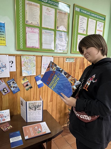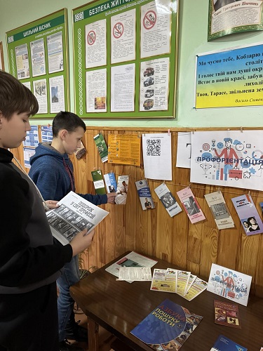 Виставка інформаційних буклетів, плакатів, листівок «Молоді про зайнятість» дала можливіст учням ознайомитися з цікавими професіями та знанями де можна здобути ту чи іншу спеціальність. Мрія і реальність – як їх поєднати? Як не помилитись у виборі своєї дороги, щоб бути щасливим у праці? Ці та багато інших питань по профорієнтації дало проведення серед здобувачів освіти 8 - 10 класів анкетування та тестування. |