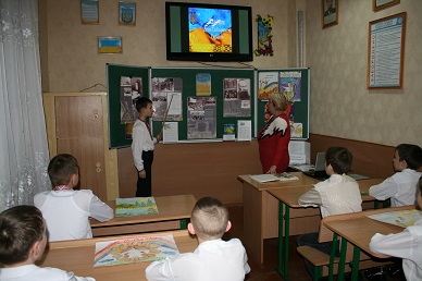 виставкою «Ми - єдиний народ сьогодні, завтра». Школярі з зацікавленістю слухали історію виникнення