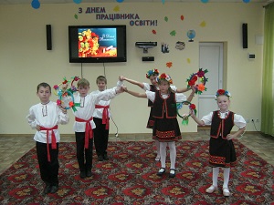 Вихованці хореографічного гуртка подарували всім присутнім свій запальний український танець. |  Свою подяку та шану вчительській праці висловили вихованці хорового гуртка «Веселка», виконавши пісні присвячені вчителям. |