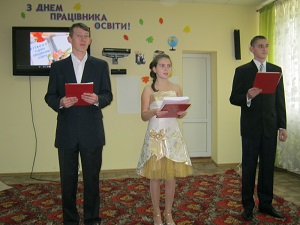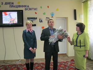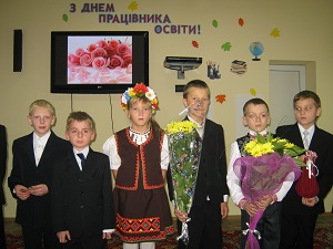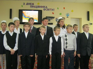 Один з найбільш шанованих професійних свят усіх працівників освітньої сфери звичайно ж завжди був і залишається улюблений нами ще зі шкільних часів - День вчителя. Першим ученим у житті кожної людини є учитель. Прекрасна професія! Найблагородніша серед інших. До професії вчителя з повагою ставилися в усі часи. Мабуть, тому, що вчитель – це не просто високоосвічена людина, а насамперед той, хто вміє передати свої знання іншим, пояснити незрозуміле, знайти ключ до здібностей кожного учня.Підтримуючи добру традицію святкування Дня Вчителя учні школи підготували для вчителів та вихователів концертну програму. Щирі вітання адресували вчителям та вихователям школи депутат Васильківської міської ради Сергеєв Сергій Олексійович та директор школи Куравська Людмила Сергіївна, |