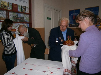 | На знак поваги та шани школярі вручили ветеранам запашний хліб та подарунки.