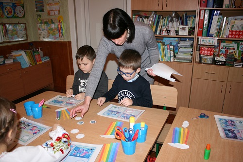 Далі вихованці мандрували лісовою стежиною з казковими героями, які завітали до них у гості. По дорозі їм зустрівся дідусь Лісовичок, який підготував кросворд про лісових тварин. Чарівна Фея запропонувала не дуже складне завдання «Скласти картинку із пазлів». А казкова Краплинка розповіла, про себе історію, яка наштовхнула дітей на створення кольорової аплікації Веселки.