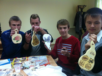 великим бажанням і терпінням, учні опановували мистецтво декупажу. Зроблені вміло, від душі, своїми руками дощечки-подарунки, виглядали не гірше, а то і краще магазинних. |  |