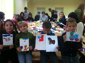 |  | Молодші школярі фантазували над виготовленням аплікації. Ярослава, Аміна, Сергій та Максим впоралися першими. Їх акуратні роботи зафіксував об’єктив фотоапарату. В кінці зустрічі школярів чекали солодощі і подарунки від наших друзів.