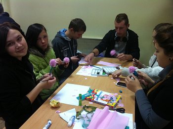 Інша група дітей вчилася створювати з крепового паперу об'ємну квітку любові, вірності та щастя – гіацинт. Процес виготовлення був цікавим. Вихованці оволодівали технікою «торцювання».