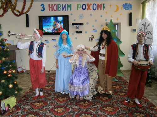 | Протягом усього свята, учні початкових класів розважали піснями, віршами та танцями Царівну-Несміяну, Снігуроньку, Бабу Ягу та Кощія. До речі, це доказ клопіткої праці і дітей, і педагогів. Але, звичайно, найочікуванішим для учнів став прихід Діда Мороза. Це для нього всі вчили пісні, загадки, скоромовки, вірші. Це йому всі писали листи. |  |