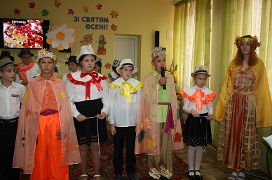 Звучали вірші про осінь, чудова музика, юні художники малювали кольоровими пензликам осінні картини…У гості до школярів завітала чарівниця осінь з повним кошиком загадок. (у виконанні учениці 10 класу Богани Обіух). А відгадки супроводжувалися появою чудового костюмованого героя овочу чи фрукту.