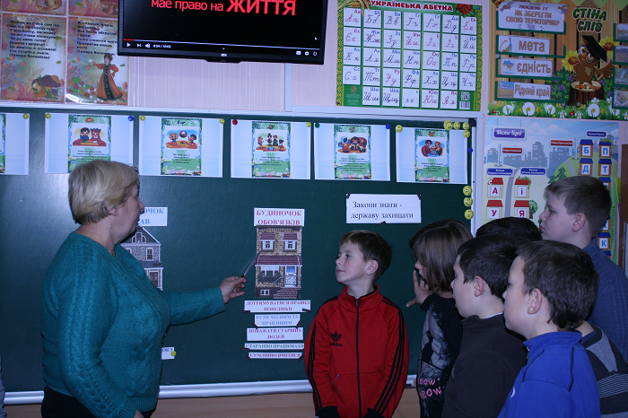 Проведено бібліотечні уроки у 1-4 класах “Я маю право знати” на яких бібліотекар інформувала юних користувачів про їхні права, навчала ставитися з повагою до себе та оточуючих. За допомогою слайд-презентації «Права свої знай, обов’язки не забувай» діти ознайомилися з Конвенцією по права дитини, розібрали в ігровій формі декілька правових ситуацій, жваво висловлювали свої міркування з приводу прав та обов’язків. |