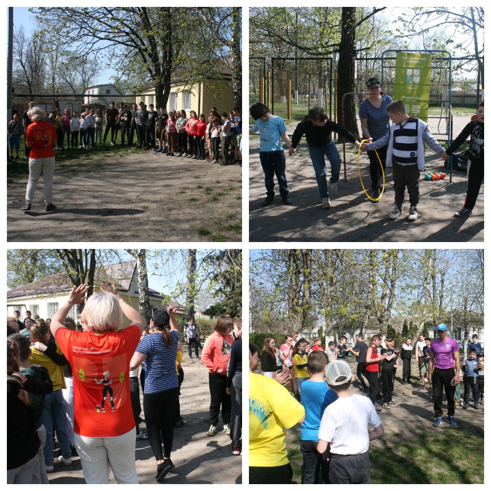 На загальному зібрані тренери активних парків та вчитель фізкультури Березанська Г.Д ознайомили учнів з датою 7 квітня – Всесвітній день здоров'я, розповіли про свідоме ставленняя до свого здоров'я, дали дітям корисні поради щодо збереження й зміцнення здоров'я. А далі вихованці взяли участь у спортивних активностях, під час яких тренували витривалість, розвивали гнучкість і кординацію рухів.