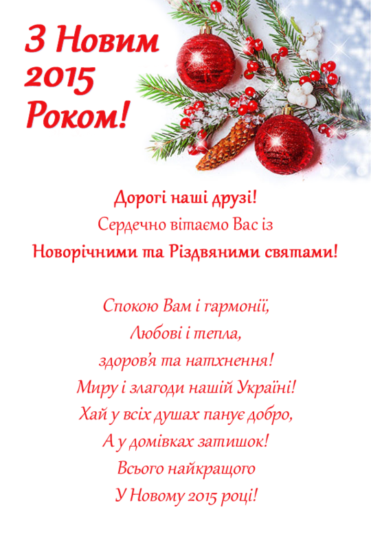 Вітаємо Вас із Новорічними та Різдвяними святами!