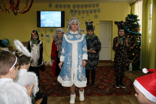 Звуками веселих мелодій почалася концертна програма « З нетерпінням я чекаю день Святого Миколая » Учні розповідали про історію улюбленого зимового свята, про Святого Благодійника, якого в народі іменують Великим Чудотворцем. Ангели славили Миколу Чудотворця піснями і віршами, а норовливі чортик та його товариш Антипко, все спонукали дітей до злих справ. Але, як завжди, добро перемогло зло. Діти не розгубилися: розповідали вірші, співали пісень. Радість, усмішка та щирість в дитячих очах ще раз переконали усіх присутніх на святі, якою великою справою є творити добро, дарувати один одному любов та доброту. Свято вдалося на славу, а щасливі дітки поспішали до своїх класів, аби знову поринути в світ знань. |