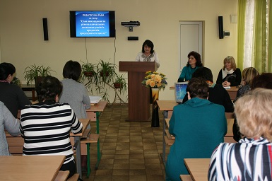 «Довго сам учись, коли хочеш навчити інших». Ці слова видатного українського філософа Григорія Сковороди відображають беззаперечну істину про те, що саме постійна наполеглива самоосвітня робота вчителя гарантує його творче та професійне зростання. Друга частина педради була присвячена творчим звітам педагогів, які атестуються в 2015-2016 н. р.