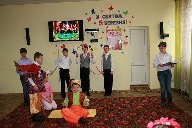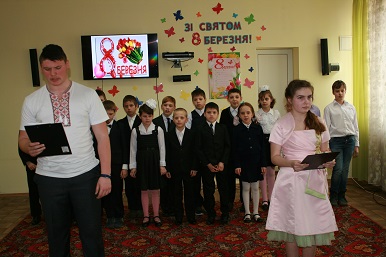Цікаво, тепло, весело і піднесено пройшло свято у нашій школі. Першими порадували своїми привітаннями та виступами молодші учні. Лунали слова-вітання рідним матусям, бабусям, сестрам, вчителям. Хлопчики в свою чергу вітали дівчат.