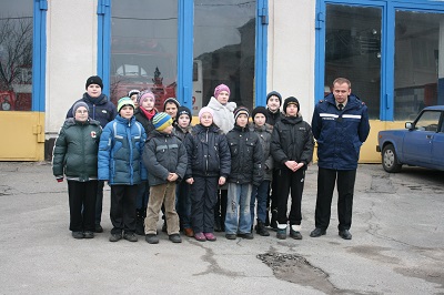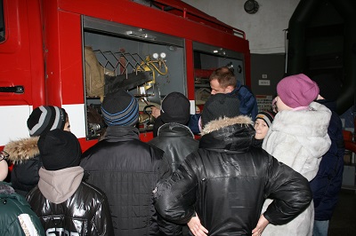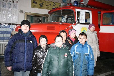 екскурсії сфотографувалися біля пожежно-рятувального автомобіля. Найспритніші
