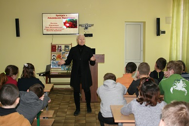 22 лютого до Васильківської спецшколи-інтернат з нагоди Міжнародного дня рідної мови завітала поетеса, перекладач, член Васильківської літературної організації "Багаття калинове" Кравченко Людмила Іванівна.    На зустрічі були присутні вчителі та учні школи. З захопленням слухали розповідь про те, що надихнуло її вчити українську мову, писати нею власні поезії та перекладати з інших мов. Звучали поезії російських поетів перекладені на українську мову, а також українських поетів (Стуса, Симоненка) перекладені російською мовою.    Всіх присутніх зачарувала пісня Людмили Кравченко про Україну та українську мову.    З сумом у серці звучала пісня про воїнів захисників, які змушені і сьогодні захищати кордони рідної неньки - України. "Їх нічим неможна залякати, вони мріють про те, щоб і надалі звучала Кобзарева мова та українська пісня", - розповідала поетеса.    Відбулася також презентація збірок Людмили Кравченко: " У музиці твоїх мовчань", "111 кроків у вічність", " Музика миті", "І мовою бринять рядки...", " Безкінечна мить".