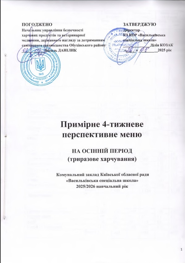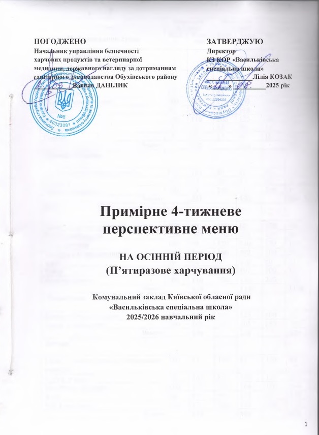 Примірне 4-х тижневе перспективне меню на осінній період (пятиразове)